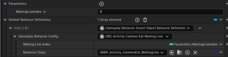 UGameplayBehaviorSmartObjectBehaviorDefinitiongetGameplayBehaviorConfig(c++ only) - from there you can cast the config object to yours and get the variables you set there (if you had any variables bound to a parameter in the smart object definition, it will be set to that value)