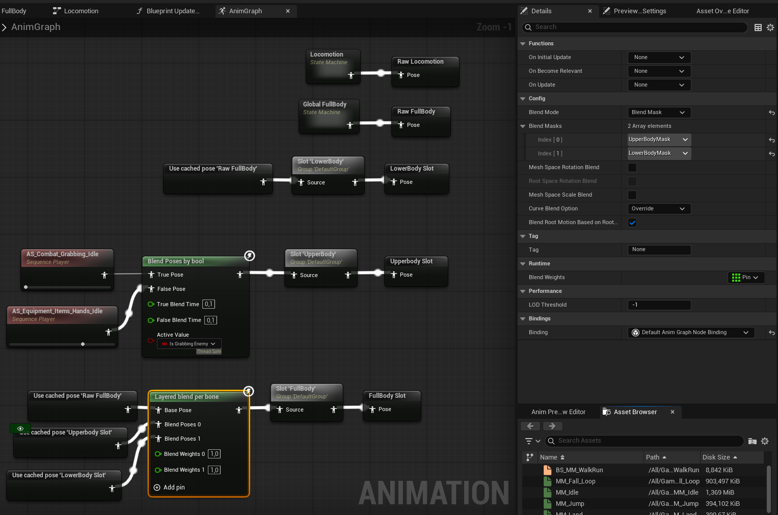 For this simple example I am playing the walk and punch animation in the Animation Graph, but this works to if (for example) you play the punch animation montage from gameplay code.