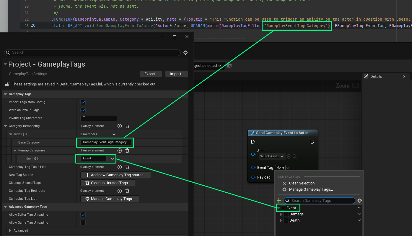 UPROPERTY(meta=(Categories="Your.Tag.Category"))You can also specify a list to combine multiple categories.